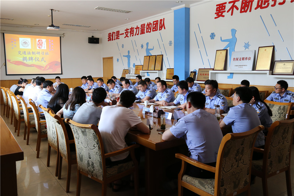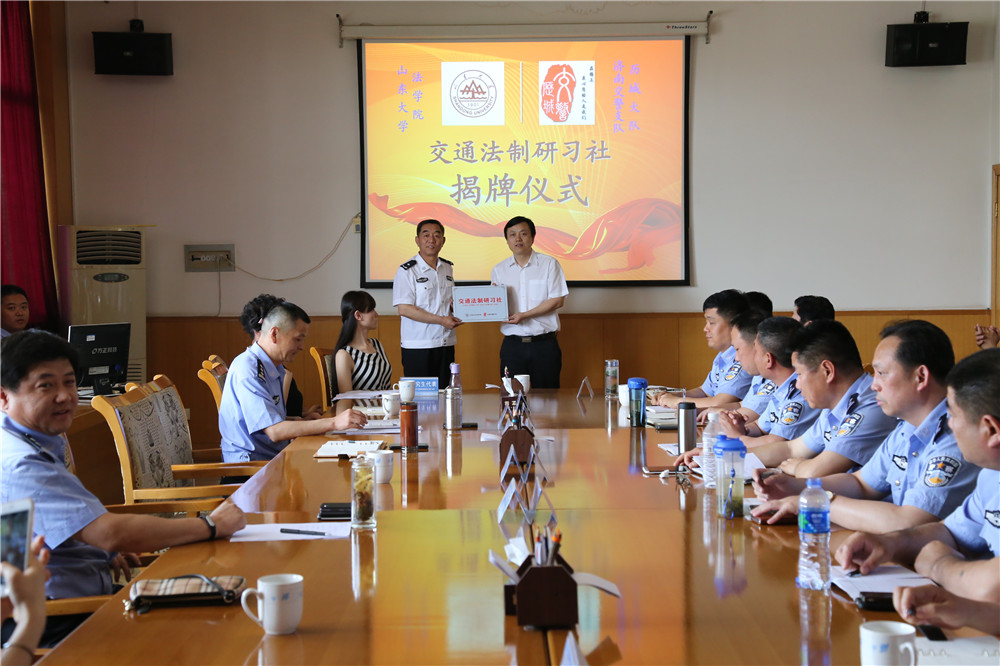 交通法制研习社揭牌仪式和开班研讨活动圆满落幕,古天乐太阳娱乐集团tyc493与历城区交警大队的长期合作也正式开始。交通法制研习社不仅为历城区交警大队的广大交通干警搭建了一个提升法律素养、提高执法能力的平台,也为古天乐太阳娱乐集团tyc493学子提供了了解一线交通执法、锻炼实务能力的宝贵机会。