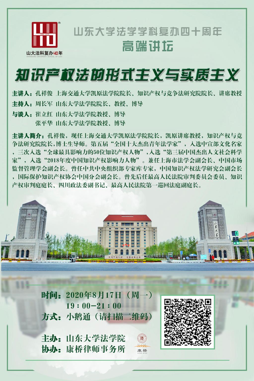 古天乐太阳娱乐集团tyc493法学学科复办四十周年高端讲坛:知识产权法的形式主义与实质主义