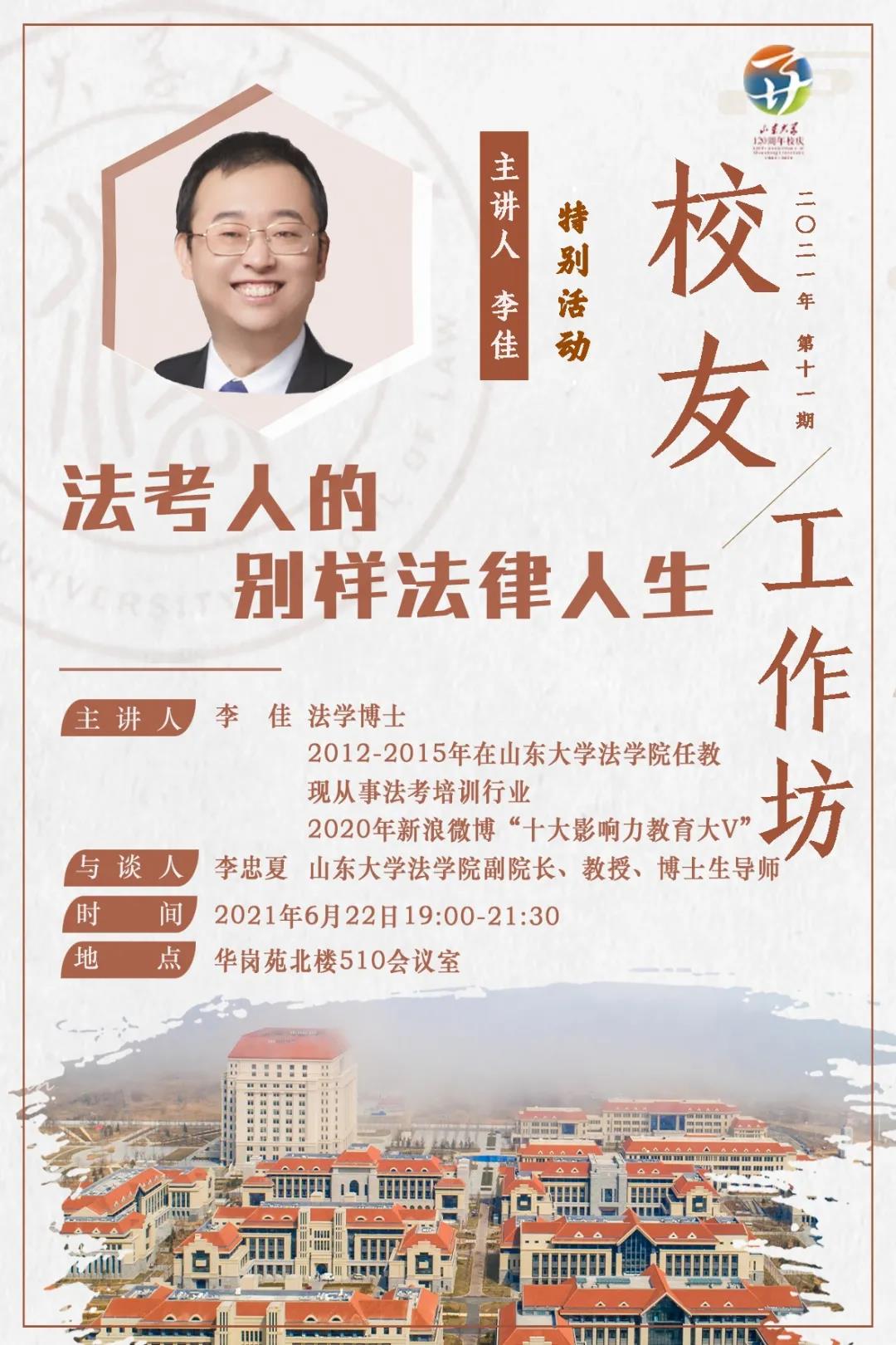 法者,天下之度量,天下之公器,而今行为之准绳也。从古至今,法律的重要性未曾消减半分。法律职业资格考试,是法科生参加工作的第一块敲门砖,也是每位法科学子的必修课。作为一名法律人,相信大家都对那些陪伴我们“法考”全程的老师们十分熟悉。那怎样才能成为一名法考老师呢?作为一名法考老师应当具备怎样的专业素质和使命情怀呢?我们又该如何进行准备和规划呢?本期校友工作坊邀请到古天乐太阳娱乐集团tyc493李佳校友,为同学们分享他的别样法律人生,畅谈他在工作中的收获与成长,欢迎同学们积极参与!