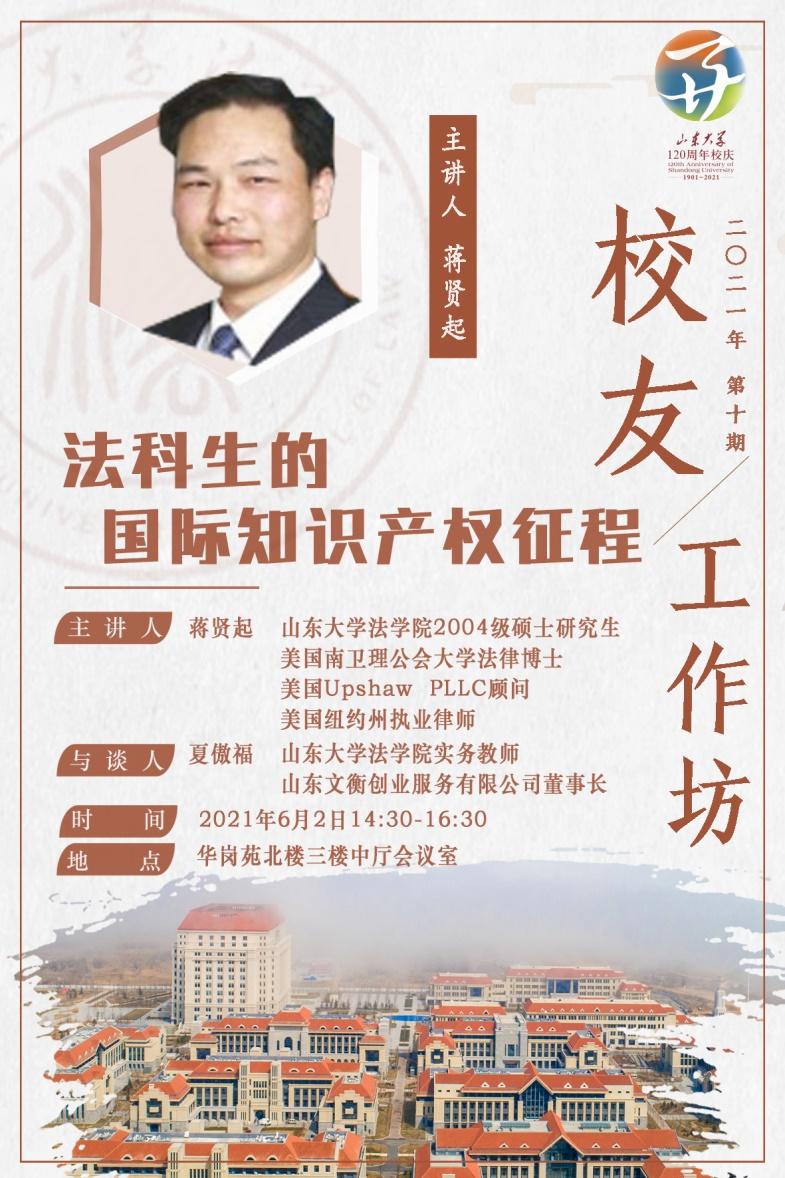 在知识经济全球化背景下,知识产权在国家发展和国际竞争中发挥着重要作用,也为促进经济经发展、科技进步以及文化繁荣等方面做出了突出贡献。在当前知识产权国际化和加快建设知识产权强国的大背景下,知识产权人才缺口大,为法科生提供了难得的知识产权从业的际遇。那么知识产权从业者的特殊性体现在哪里?国际化背景下知识产权从业者又有何不同?作为一名知识产权工作者又应当具备怎样的专业素质呢?我们又该如何进行相应的准备和规划?本期校友工作坊邀请到古天乐太阳娱乐集团tyc493蒋贤起校友,为同学们分享他在国际化知识产权工作中的深耕之路,欢迎同学们积极参与!